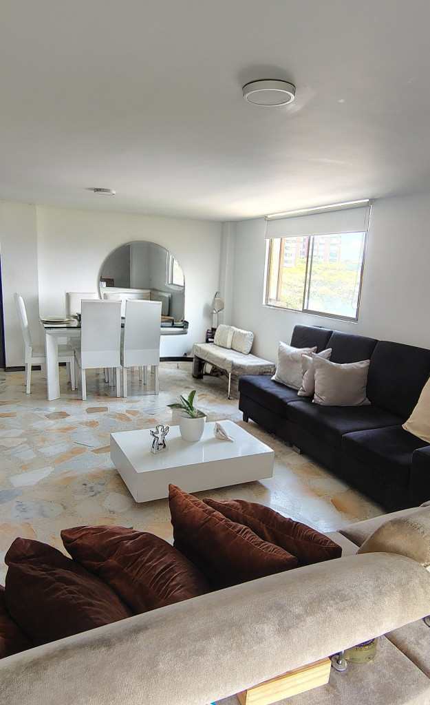 Se vende apartamento al Sur de la ciudad de Cali, barrio Mayapan las Vegas piso 6, con 121m2, 3 habitaciones, 2 baños, 1 cuarto de servicio más baño, cocina integral, sala comedor, sala de TV y parqueadero lineal propio en sótano. El conjunto cuenta con salón social, piscina, vigilancia 24/7, fácil acceso de transporte ubicado sobre la calle 5. Valor administración $870.000 valor Venta $480.000.000