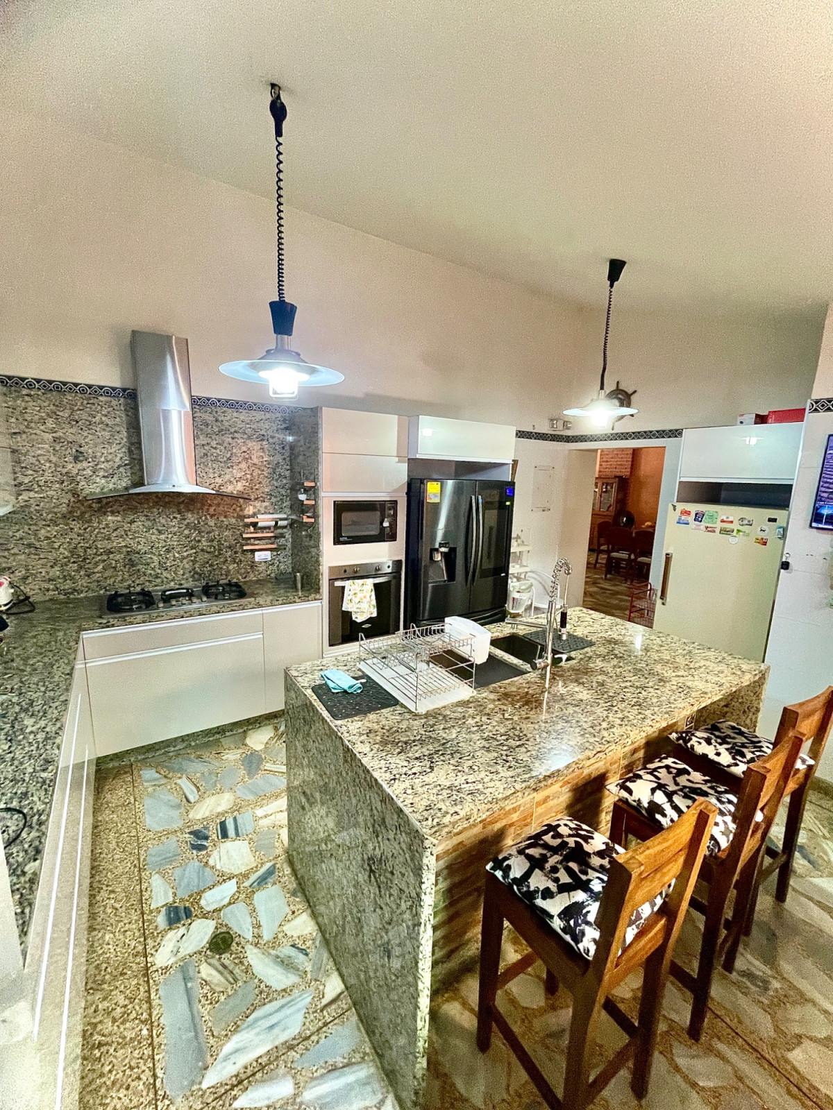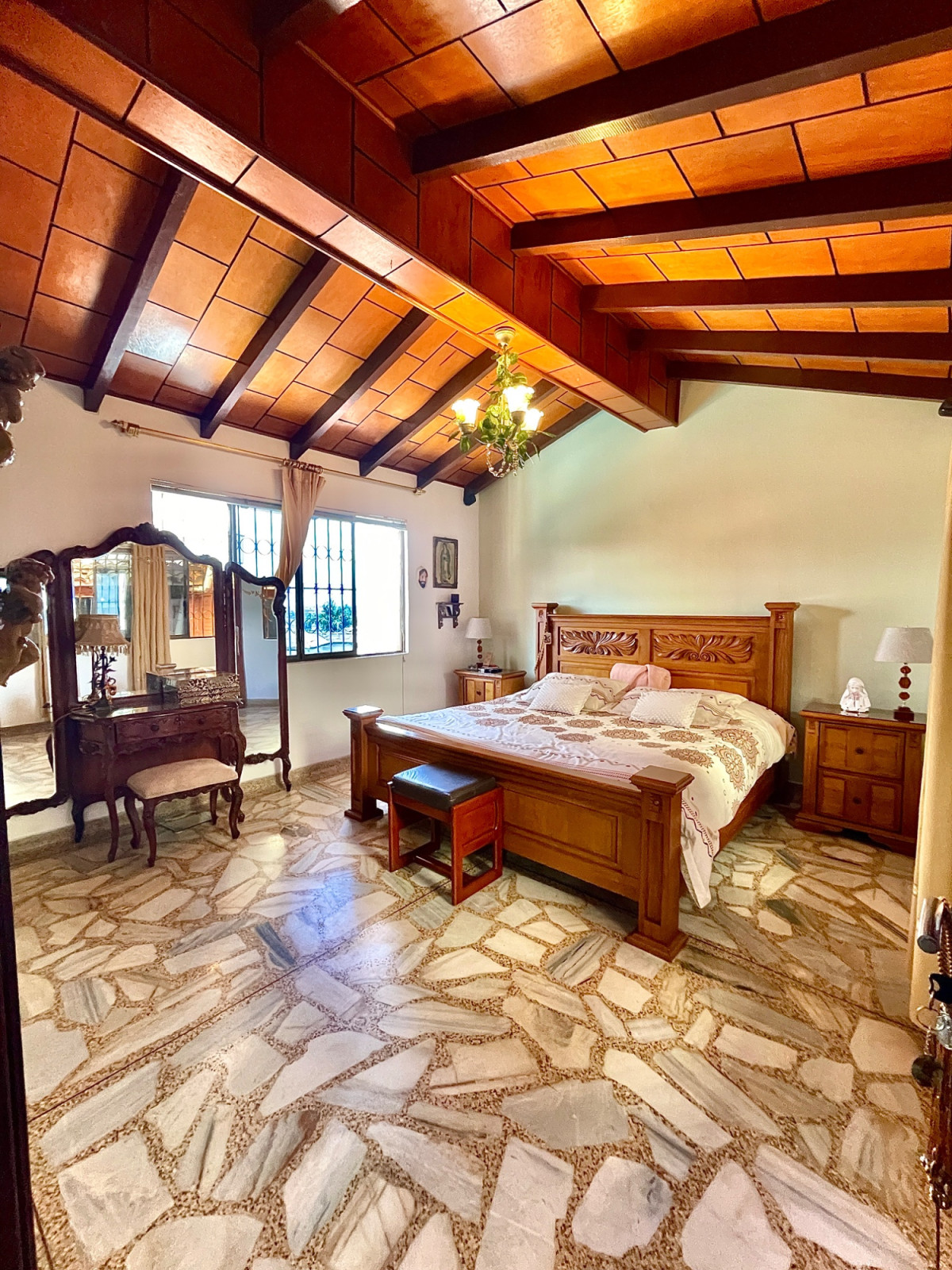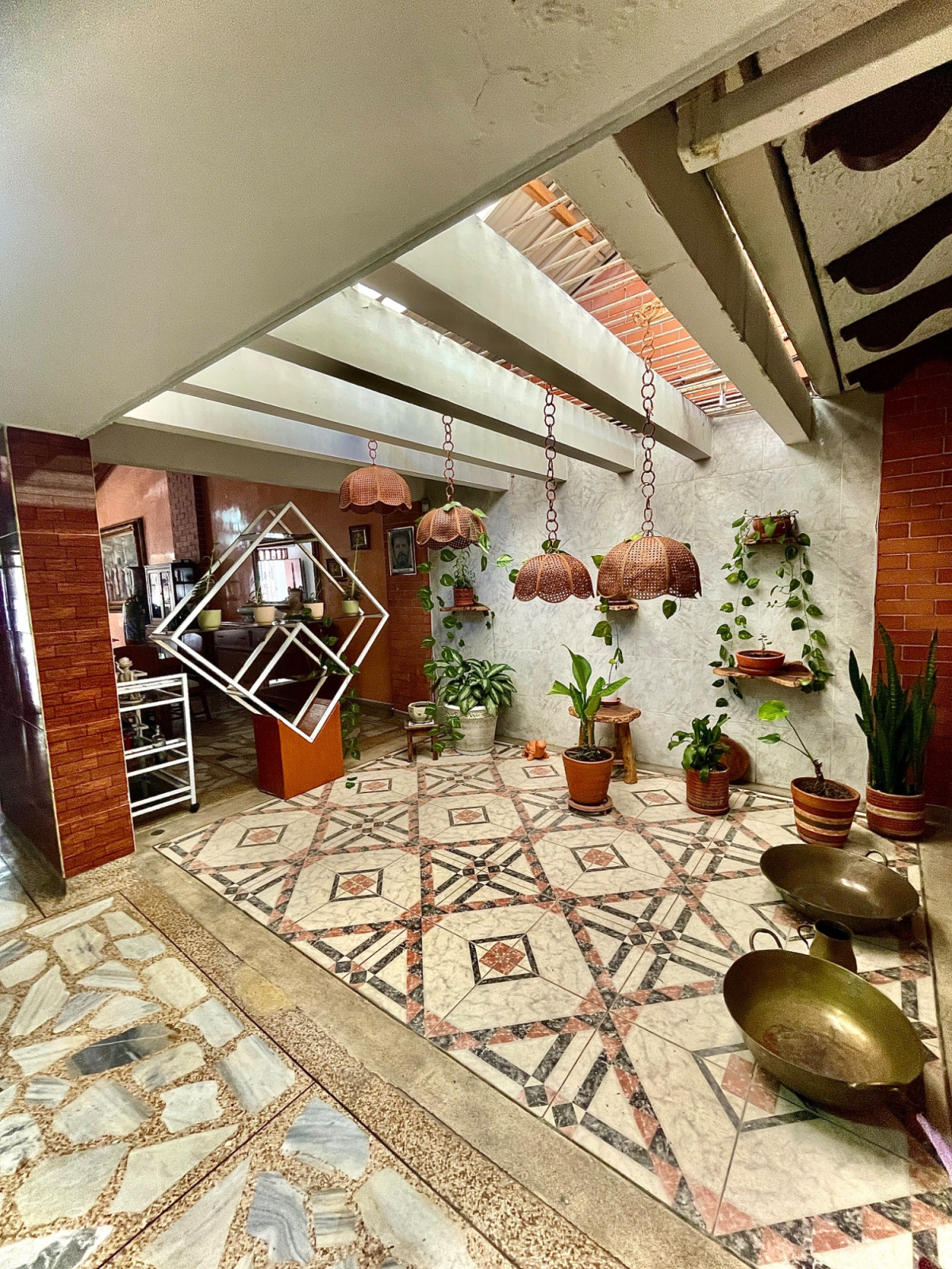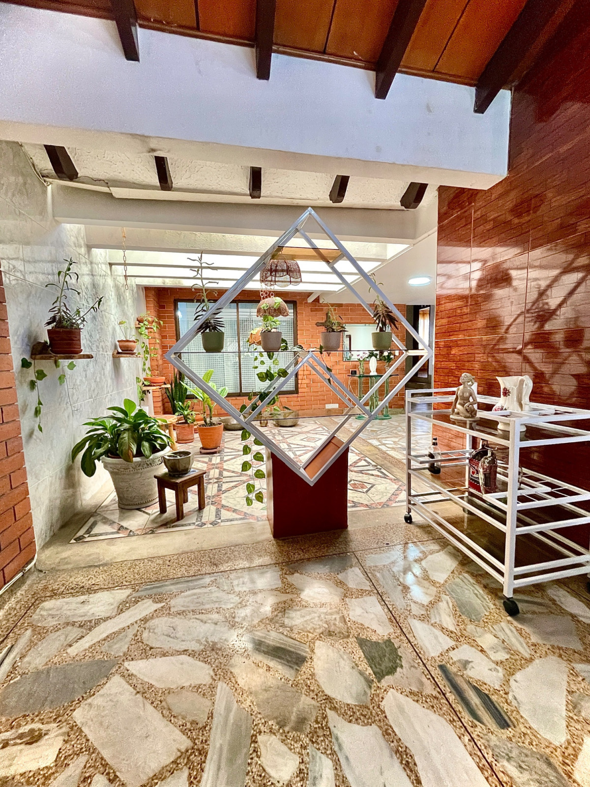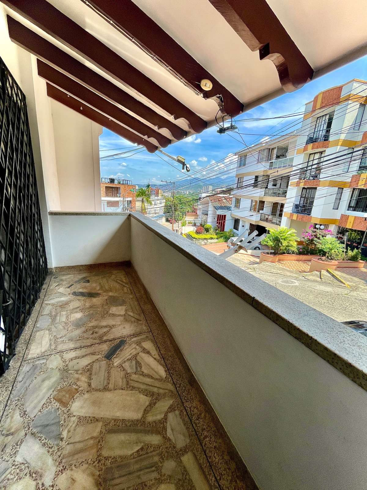 Se Alquila casa al Oeste de Cali, barrio Miraflores, 427m2, 4 habitaciones, 3 baños, sala de TV, estudio, sala, comedor, 2 patios internos, cocina integral con bahía, piscina, sauna, jacuzzi, cuarto de servicio con baño, garaje con puerta eléctrica para máximo 6 carros, cuarto de herramientas. Casa con amplios espacios, traga luz en la sala, techo en madera a doble altura, piso en retal de mármol, cerca eléctrica, circuito de cámaras, puerta blindada, cerraduras y cuarto de máquinas. Casa ubicada a 5 cuadras de la calle 5ta, sector residencial seguro, vigilancia en la zona, tiene cerca restaurantes, supermercados y avenidas principales. Valor alquiler $7.000.000